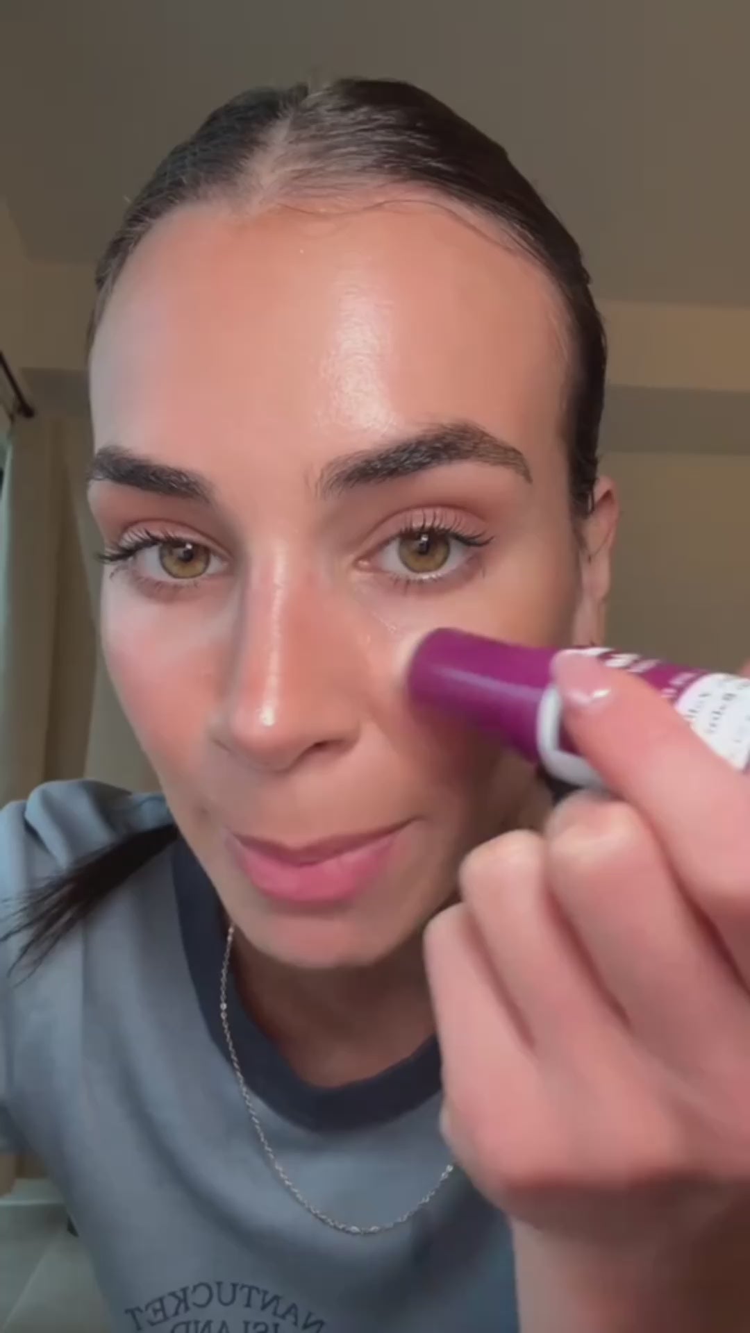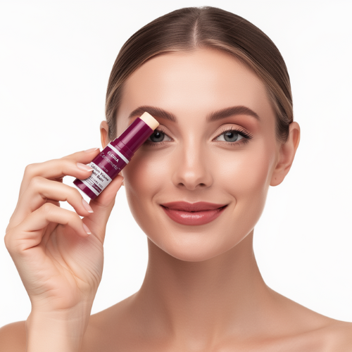 Twist up a small amount of balm and gently swipe it over target areas: under eyes, crow’s feet, smile lines, forehead creases, or around the lips.